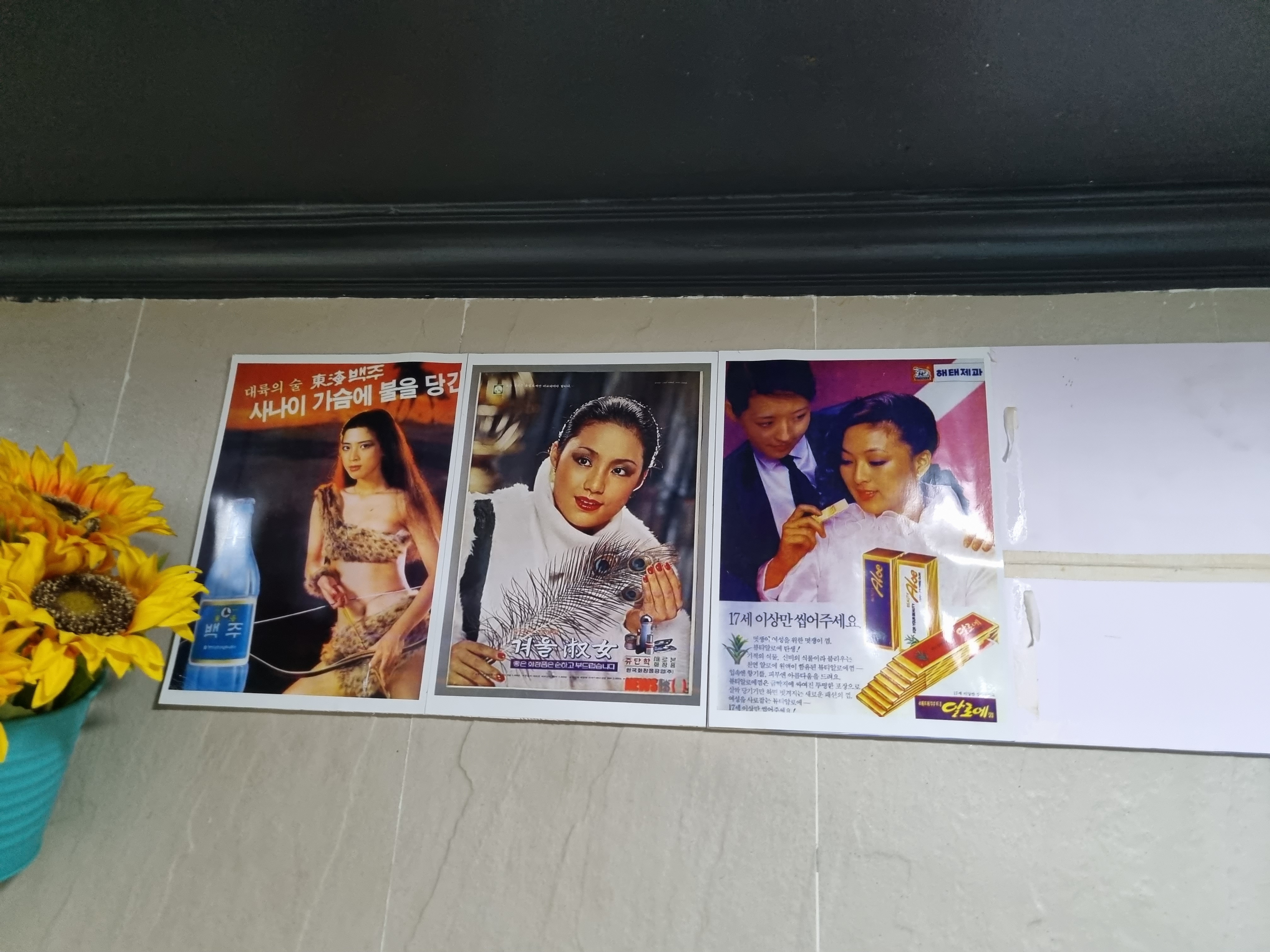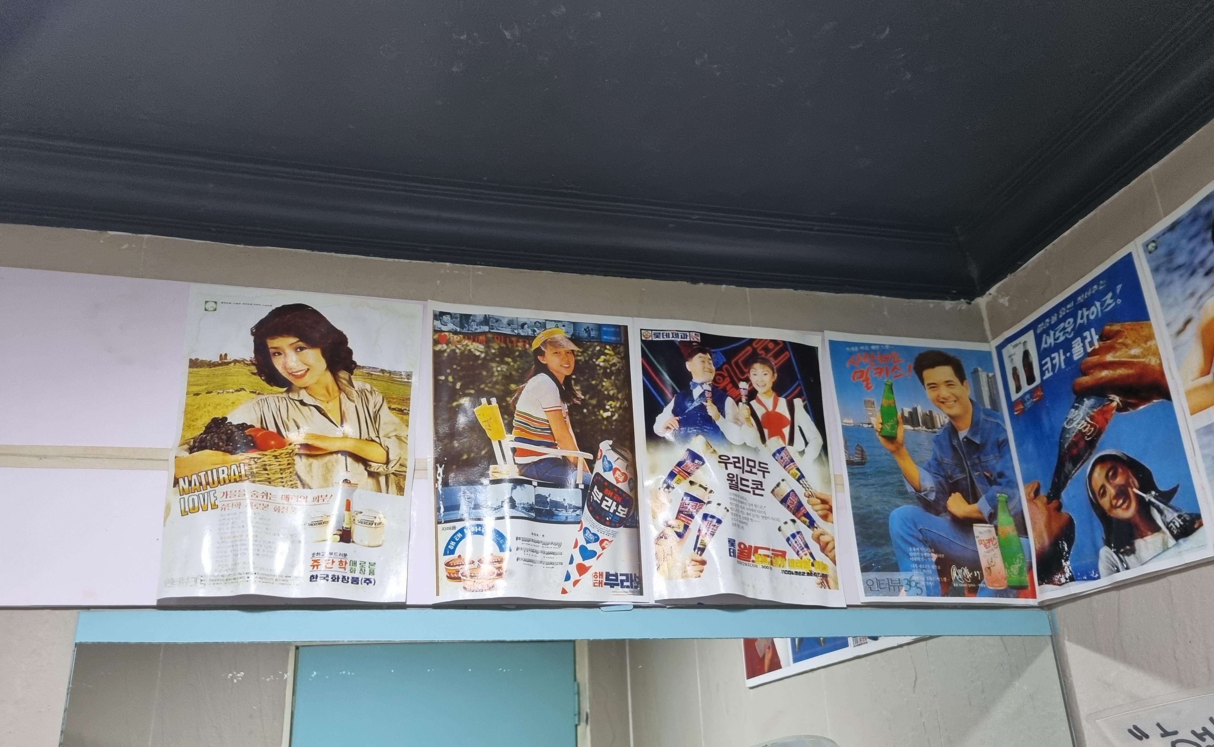 이게 웬걸? 옛날 한국 광고 포스터들이 쭉 붙어 있길래 그거 구경한다고 구경하다가 자리에 앉으니